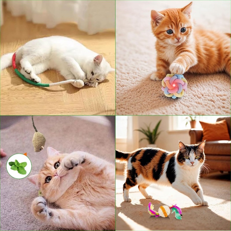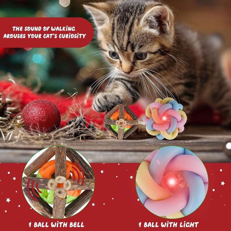 Crafted from durable and soft materials, each toy is gentle on your cat's paws and teeth, ensuring safe and comfortable play throughout the festive season.