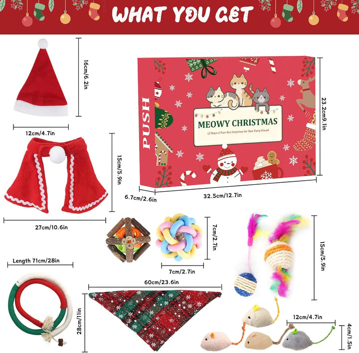 Make this holiday season exciting for your cat with 12 days of unique toys! Each day unveils a new surprise, including feather toys, jingle balls, and light-up balls, giving your cat endless joy leading up to Christmas.