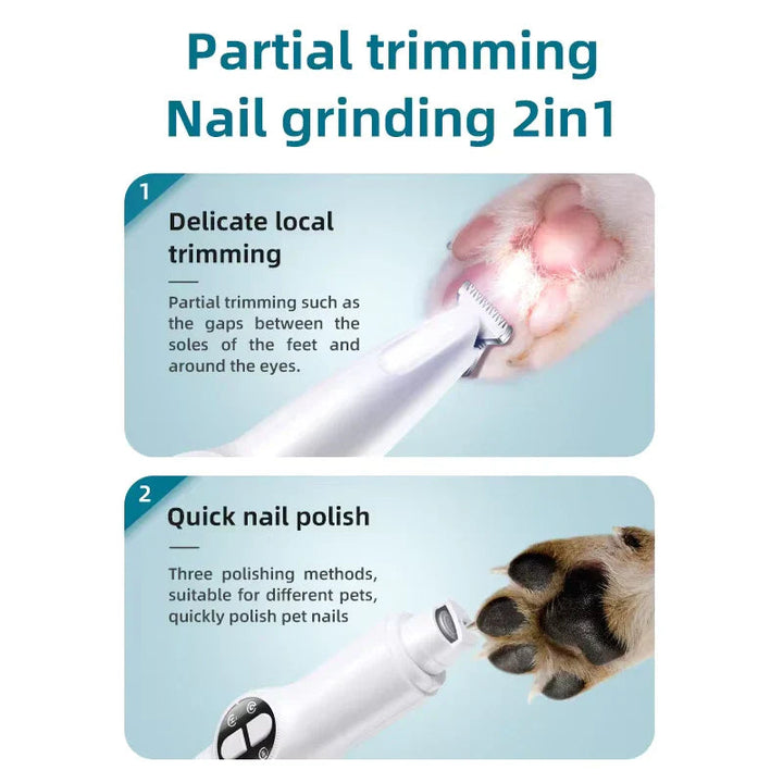 The 2 in 1 Trimmer & Grinder⢠is a revolutionary grooming product that we built with your pet in mind. It's the easiest and fastest way to keep your pet's hair trimmed and nail trimmer with no mess!