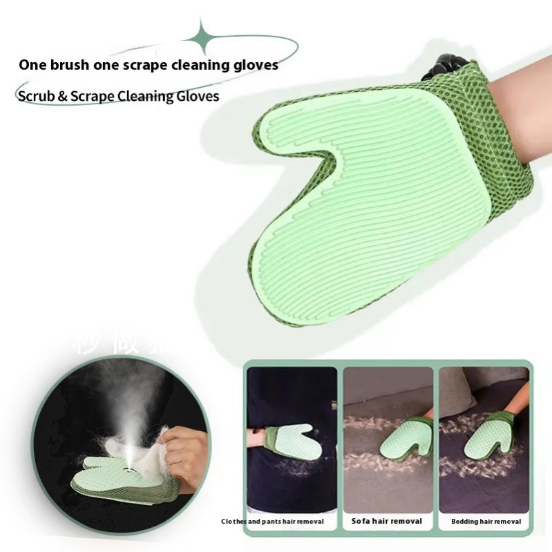 Once grooming is done, just flip the glove. The textured reverse side quickly sweeps pet hair off upholstery, bedding, or even dark denimâno adhesive sheets required.