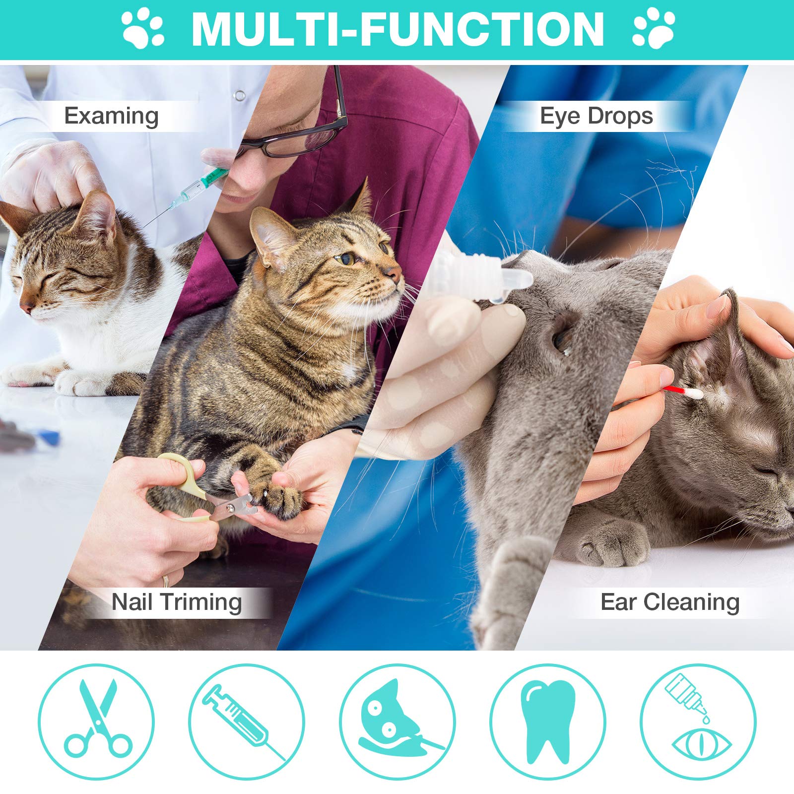 Equipped with four adjustable drawstrings to snugly fit cats of various sizes (up to 7kg/15.5lbs). A built-in zipper lets you access one paw at a time, making nail trimming or applying medication simple and safe.