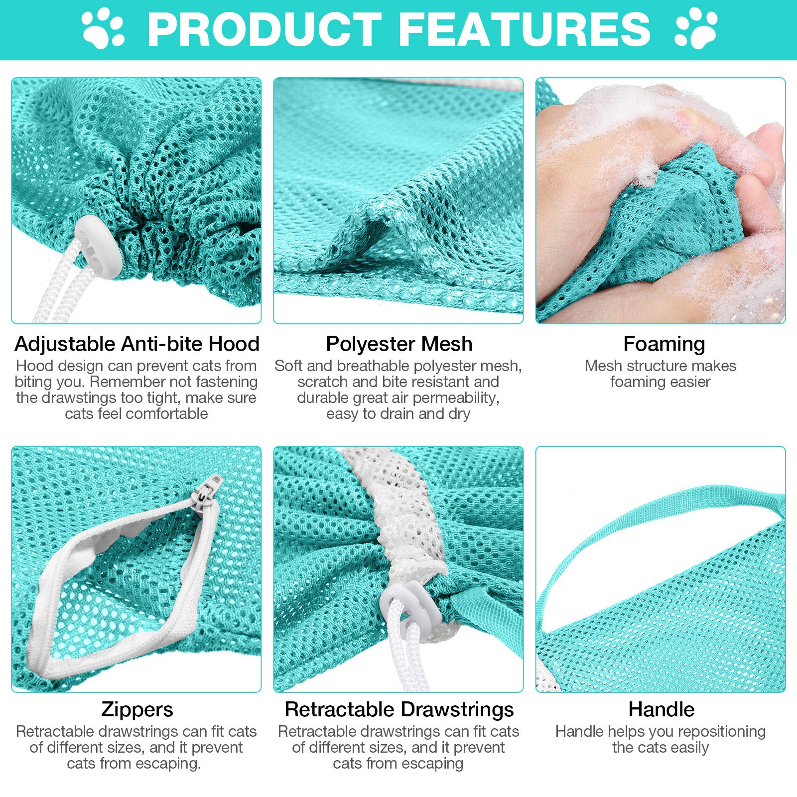 Our Cat Bathing Bag is the perfect companion for bathing, nail trimming, ear cleaning, dental care, and even vet visits. No more worrying about scratches or bites – keep your cat calm and comfortable while you perform essential grooming tasks.