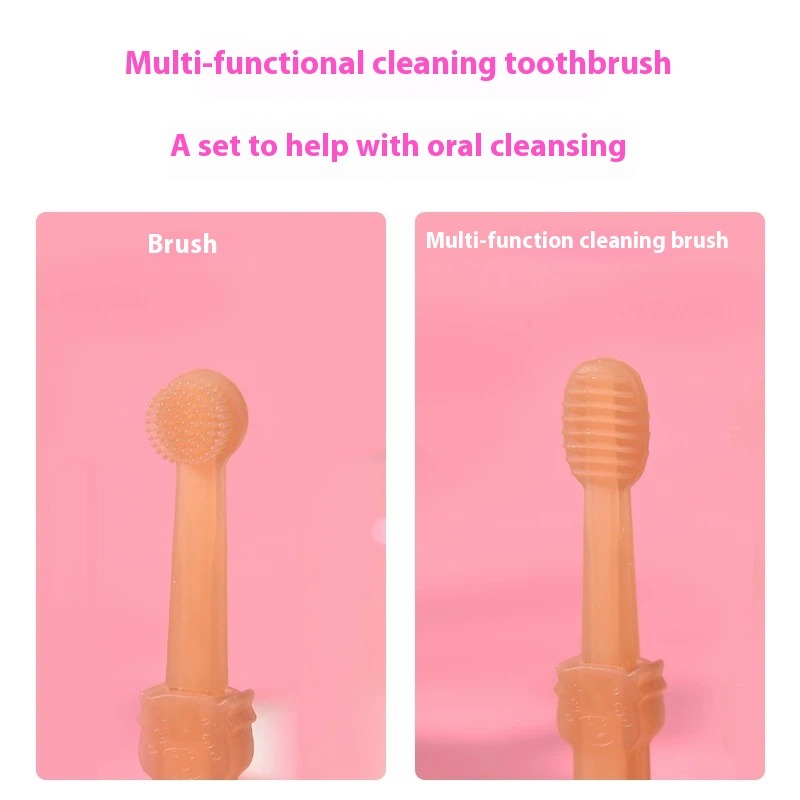 The nubbed brush massages gums for better circulation, while the ribbed side clears debris between teethâperfect for pets with sensitive mouths or gums.