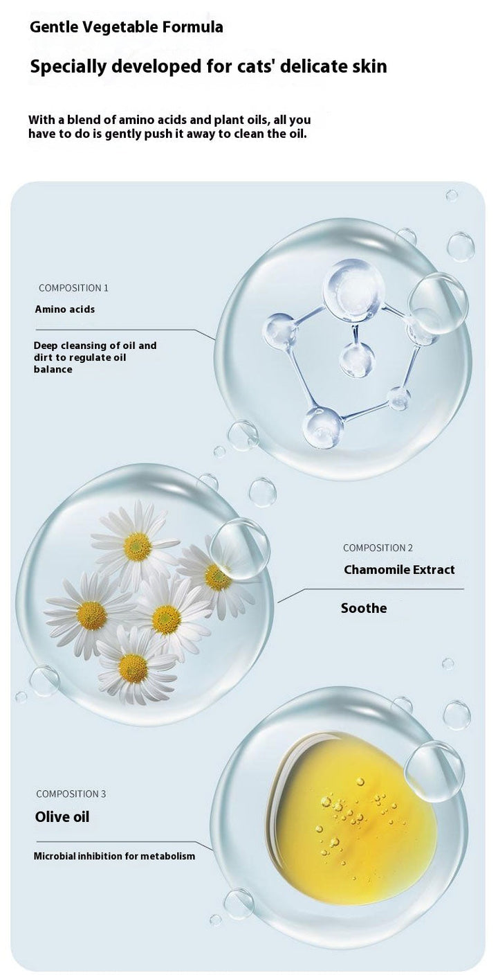 Give your feline friend a fuss-free, spa-like experience at home! This specialized foaming cleanser targets stubborn black chin and greasy tail issues, dissolving trapped oils and debris in just 30 seconds. Formulated with gentle amino acid surfactants and plant extracts, it's safe for daily or weekly use, leaving your cat’s fur fresh and healthy.