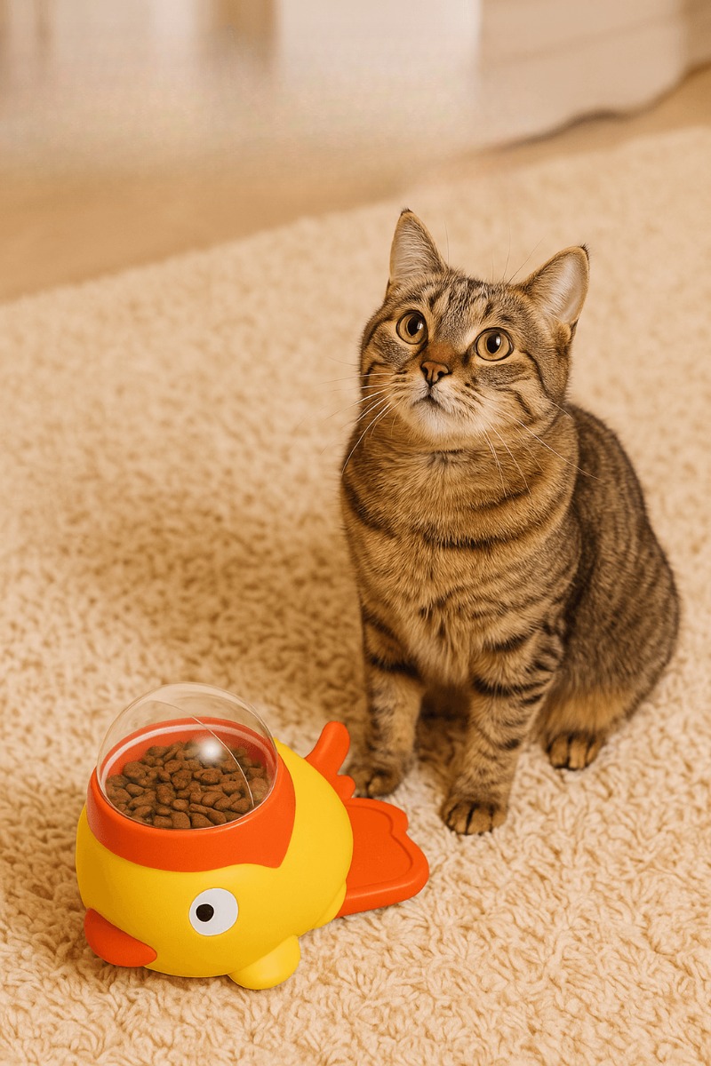 Cheerful colors, cartoon details, and a rolling base catch your catâs curiosityâperfect for shy eaters who need encouragement to engage with their food.