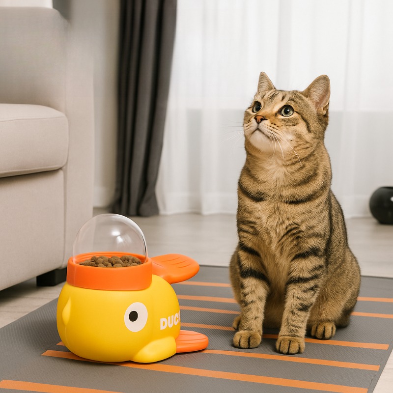 Interactive Duck-Shaped Slow-Feeder Toy for Cats