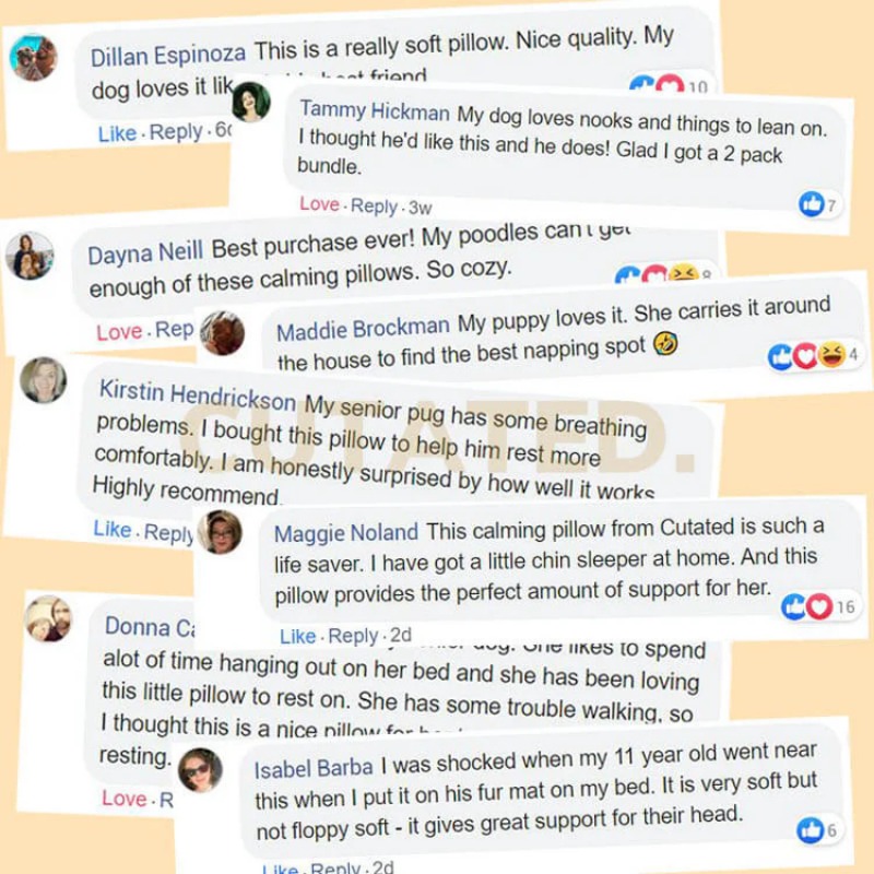 The calming pillows come in 2 sizes, the standard size for smaller breeds and the large size for larger pups, perfect for all dogs, regardless of their ages and sizes, especially for chin resters