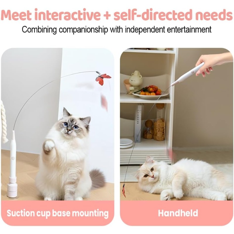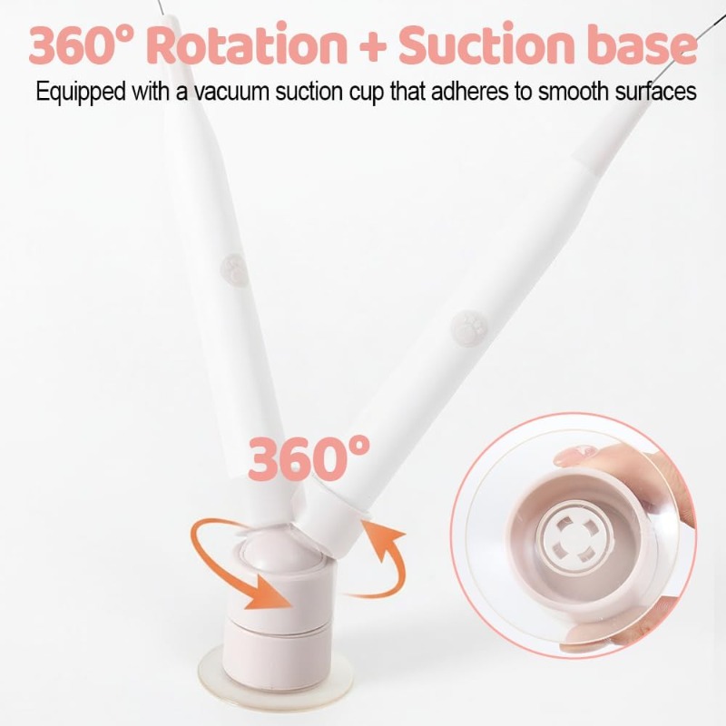Equipped with a strong vacuum suction cup, the base sticks firmly to smooth surfaces like glass, tiles, mirrors, or polished tabletops. Its 360ยฐ rotating function adds unpredictable motion, stimulating your catโs natural hunting instincts.