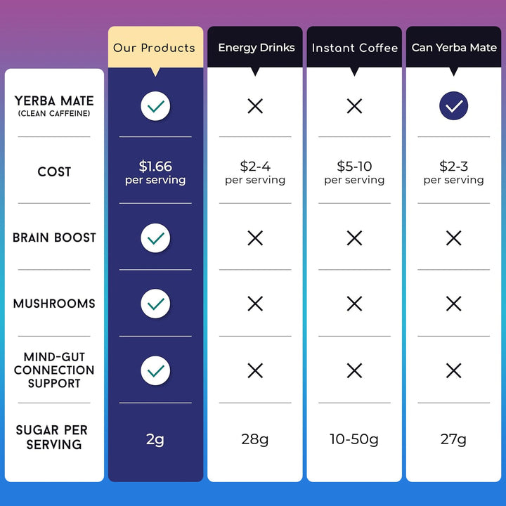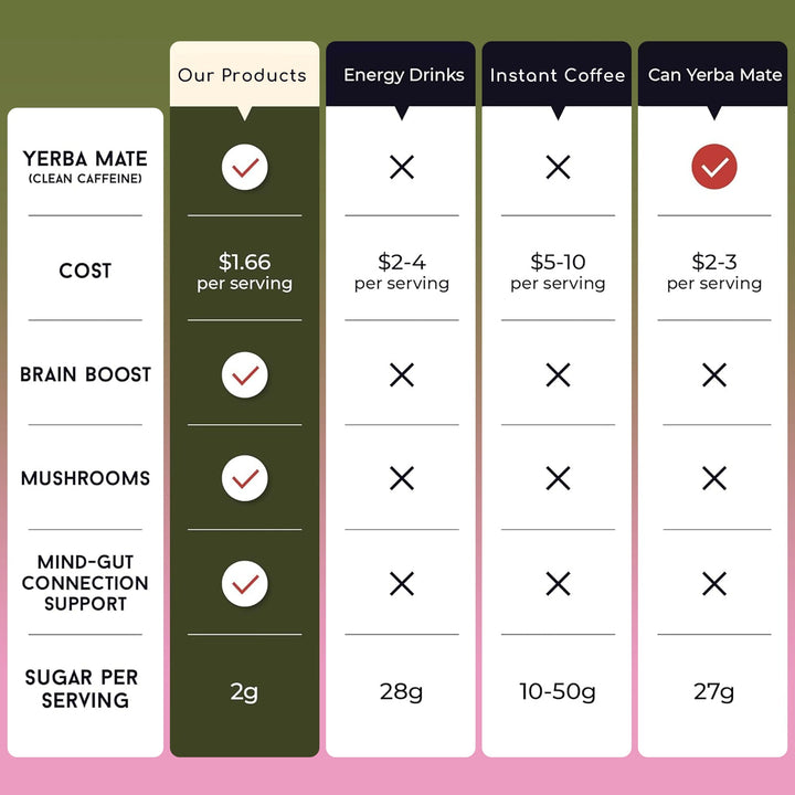 Skip the jitters! Yerba mate delivers a gentle lift that keeps you focused for hours—no afternoon slump, no racing heartbeat.